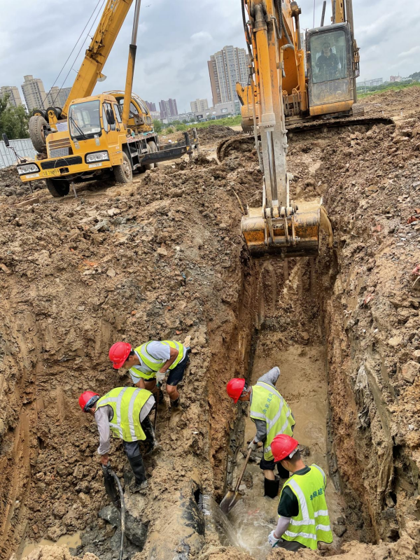 7月24日上午11:10,管線運(yùn)維中心接到報(bào)修電話,寶塔路華僑城DN500供水主管道被挖破。管線運(yùn)維中心第一時(shí)間組織搶修力量,以最快速度趕赴現(xiàn)場(chǎng)開展搶修工作。