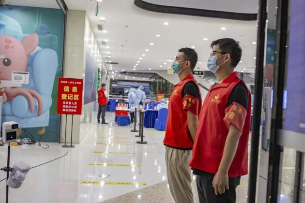 到核酸檢測點去:“注意相互間隔、出示蘇康碼?!鄙泶┘t馬甲的志愿者,在核酸檢測隊伍中,提醒市民帶好口罩,注意防護(hù),對相對聚集的區(qū)域及時限制前行速度,拉開間隔,防止交叉感染。