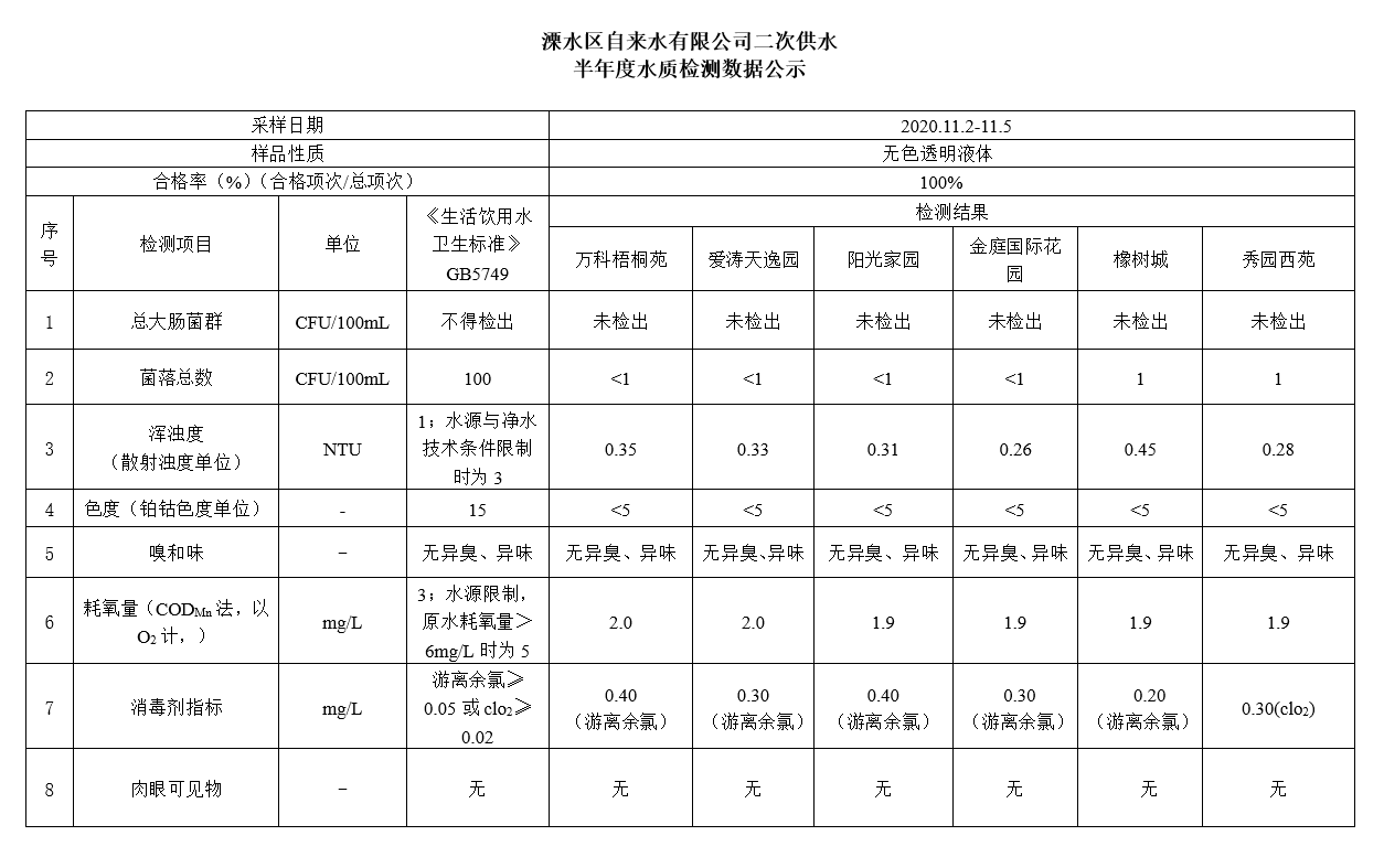 二次供水(半年度公示)2020.11.27 時(shí)間:2020-11-27 分類:水質(zhì)公示 上一篇: 出廠水每周公示2020.11.24 下一篇: 出廠水、管網(wǎng)末梢水常規(guī)42項(xiàng)指標(biāo)(月度公示2020.12.1) 相關(guān)文章 出廠水每周公示2025.8.11-2025.8.17 2025.7.15管網(wǎng)水(月度公示) 出廠水106項(xiàng)公示(半年度公示)2025.6.27 2025.7.15出廠水、管網(wǎng)末梢水常規(guī)42項(xiàng)指標(biāo)(月度公示) 2025.7.29管網(wǎng)水(半月度公示) 出廠水每周公示2025.8.4-2025.8.10 出廠水每周公示2025.7.28-2025.8.3 出廠水每周公示2025.7.21-2025.7.27